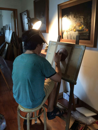 采用有色灰色紙張進(jìn)行簡單靜物、人物寫生,盡量深入刻畫。